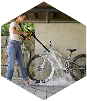 Basta encher o tanque de 300ml com detergente, fixar o aplicador na extensão e começar! Graças à espuma, que garante uma limpeza completa, e ao nível do jato, que pode ser intensificado apenas girando o bico do aplicador, a limpeza se torna fácil e rápida.