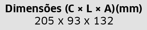 Dimensões (C × L × A)(mm): 205 x 93 x 132