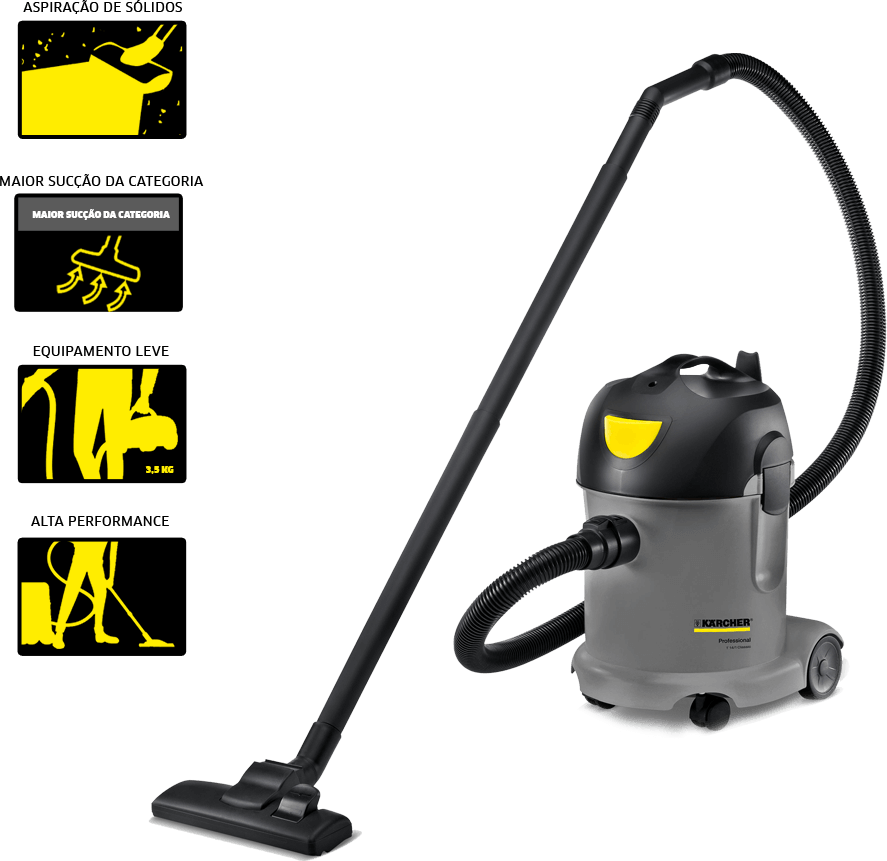 O aspirador T 14/1 conta com mangueira de sucção super resistente, podendo ser usada nas operações mais difíceis, não quebrando com facilidade.