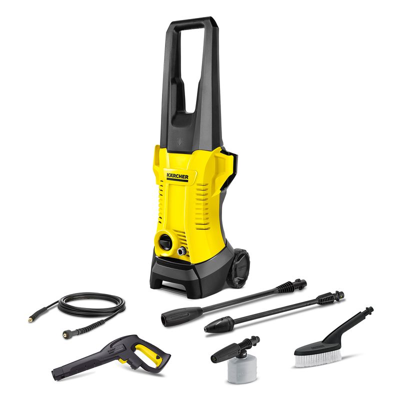 A lavadora acompanha um kit completo para limpeza veicular e doméstica: Lança de jato leque (regulável): Ideal para limpeza de rotina e cobertura de área. Lança de jato turbo rotativo: Para sujeiras incrustadas e de difícil remoção. Auto Escova: Com cerdas suaves que auxiliam na limpeza de veículos sem riscar. Canhão de Espuma Kärcher: Exclusivo para produzir uma espuma densa, quase profissional. Pistola Kärcher G145 Mangueira de alta pressão de 4 metros Engate Rápido