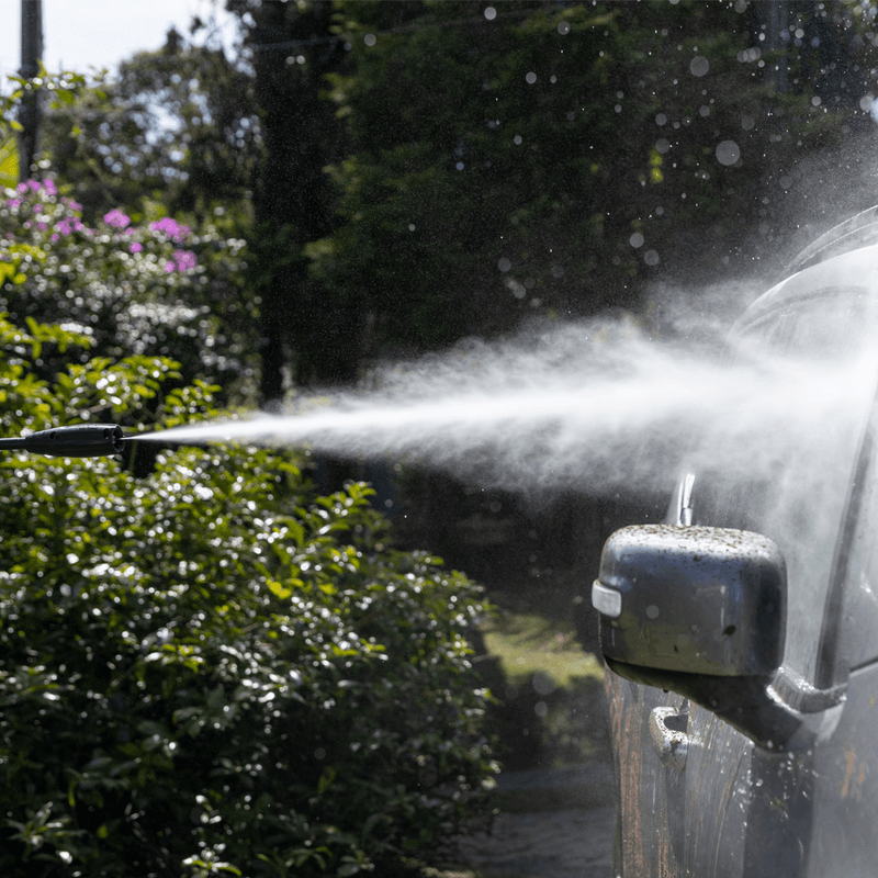 Os principais diferenciais são a eficiência e a economia de água. Ela garante uma economia de água de até 80% em comparação com uma mangueira de jardim, além de reduzir o tempo e o esforço de limpeza graças à sua alta pressão (1740 psi) e acessórios especializados.