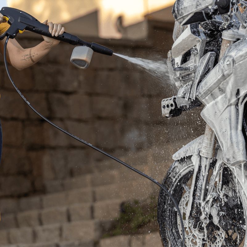 A K2 Plus CAR possui uma mangueira para sucção de detergente integrada à máquina. Isso permite a aplicação eficiente do produto de limpeza sem a necessidade de um acessório adicional (além do Canhão de Espuma incluso, que potencializa a aplicação).