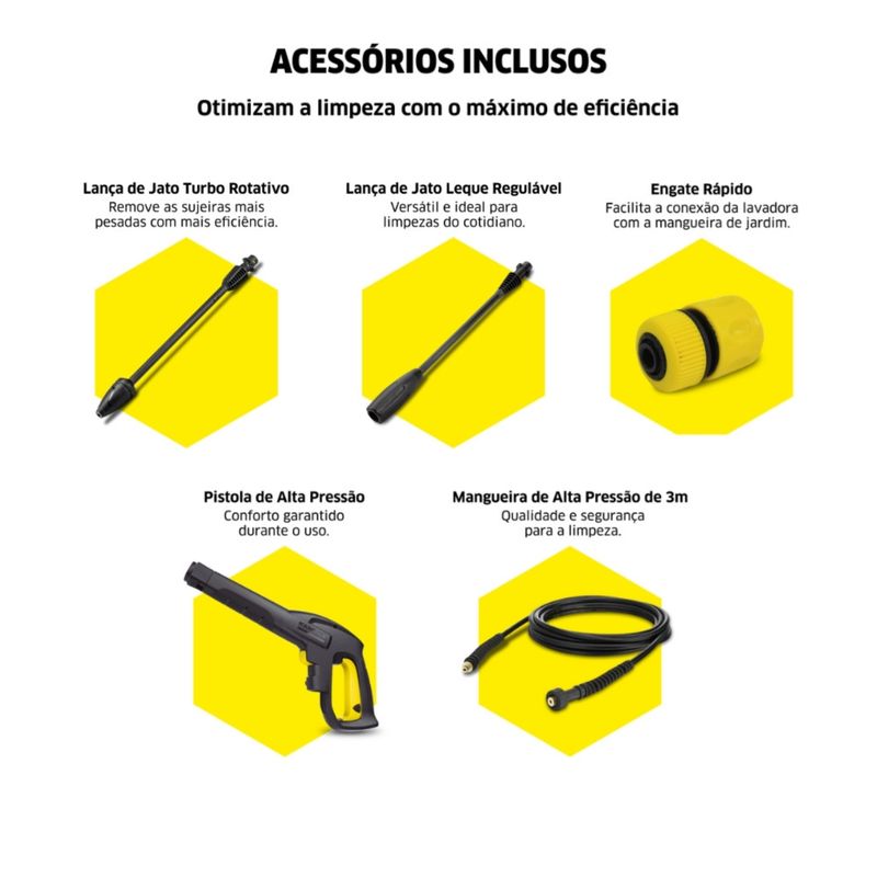 Acessórios Inclusos:- 1 lavadora de alta pressão K2 Plus TURBO