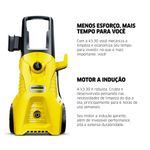 Lavadora de Alta Pressão K3.30 combina potência e inovação tecnológica, sendo ideal para quem busca eficiência profissional em tarefas de limpeza. Seu motor de indução oferece maior durabilidade, desempenho consistente e operação silenciosa. A máquina é perfeita para superfícies externas, quintais, calçadas, muros, bicicletas, móveis de jardim e áreas que exigem limpeza frequente e eficaz, sem desperdício de água. Com alça ergonômica e rodas robustas, garante mobilidade e praticidade no transporte.