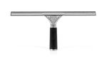 Limpador de vidros fabricado em aço inoxidável, equipado com mola para regulagem de ângulo, que permite maior controle e adaptação durante o uso. Possui manopla cônica emborrachada, proporcionando conforto e firmeza tanto na utilização manual quanto acoplado a cabos ou extensões telescópicas.