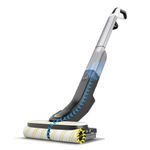 rolos de microfibra são continuamente umedecidos com água (e detergente, se desejado), garantindo uma limpeza uniforme em diferentes tipos de piso.
